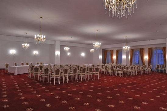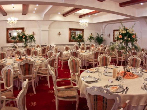 - Decorat in stilul "Imparatul Romanilor" restaurantul are 350 de locuri si ofera posibilitati de amenajare pentru servirea mesei, pentru spectacole sau conferinte.